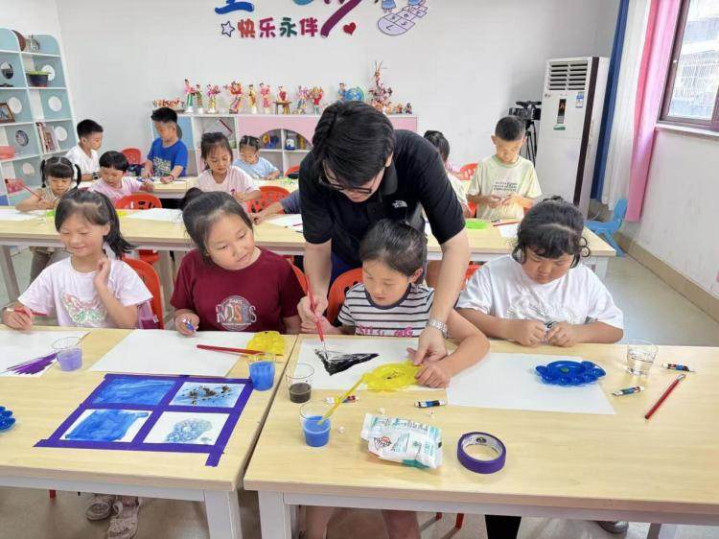 “黄老师的水彩课太有趣啦!我现在能画出天上飘着的云朵和院子里的小花了!”参加重庆市巴南区花溪街道爱心托管班的小朋友举着自己刚完成的画作,兴奋地分享着她的暑期收获。